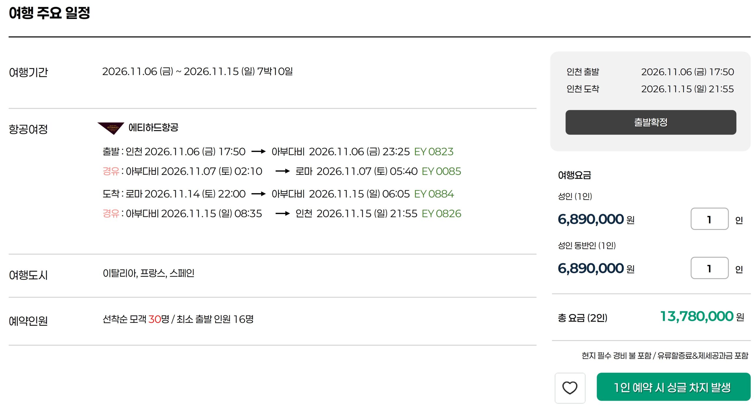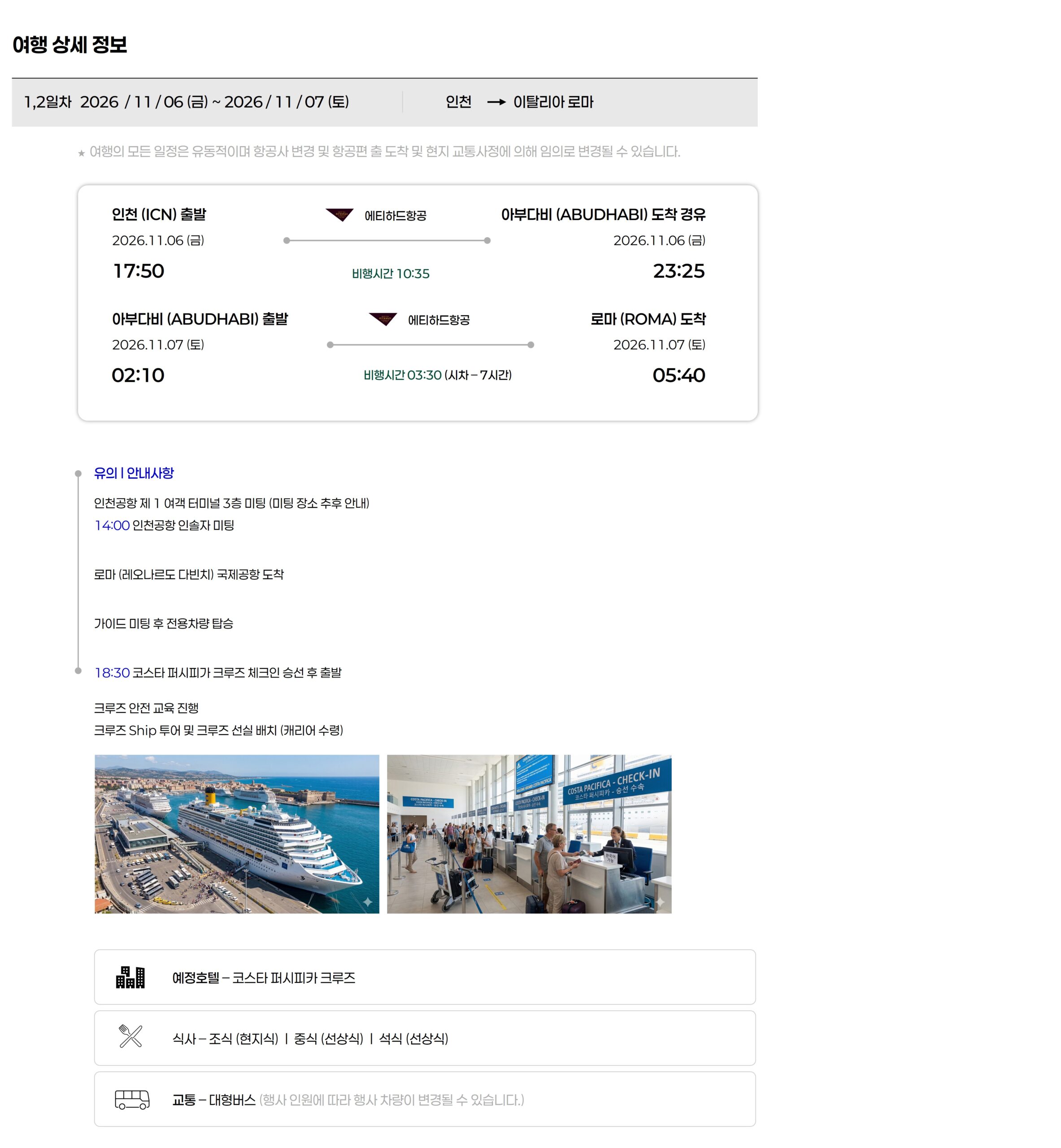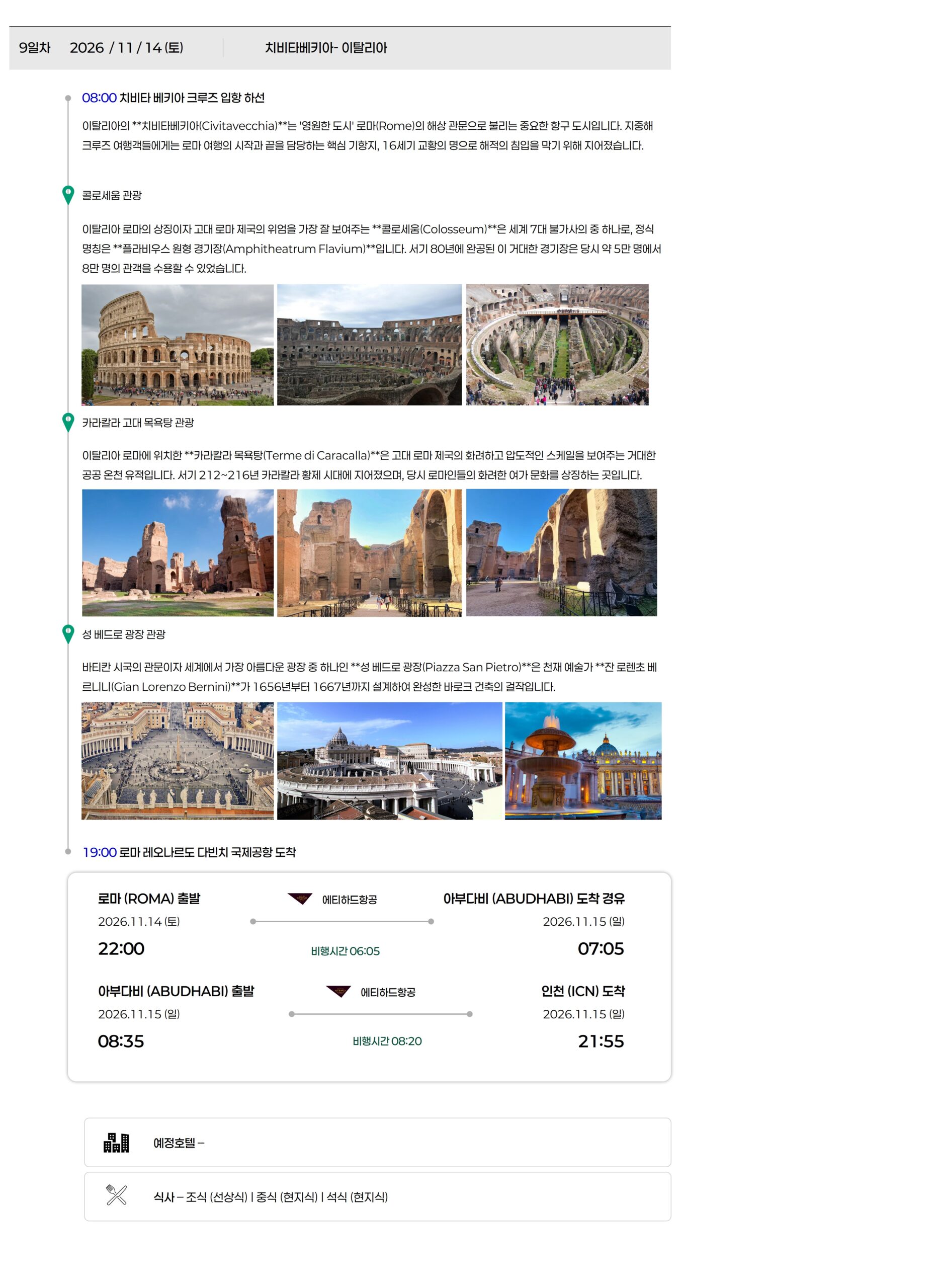 출발 : 2026.11.06 (금) ~ 2026.11.15 (일) 7박10일